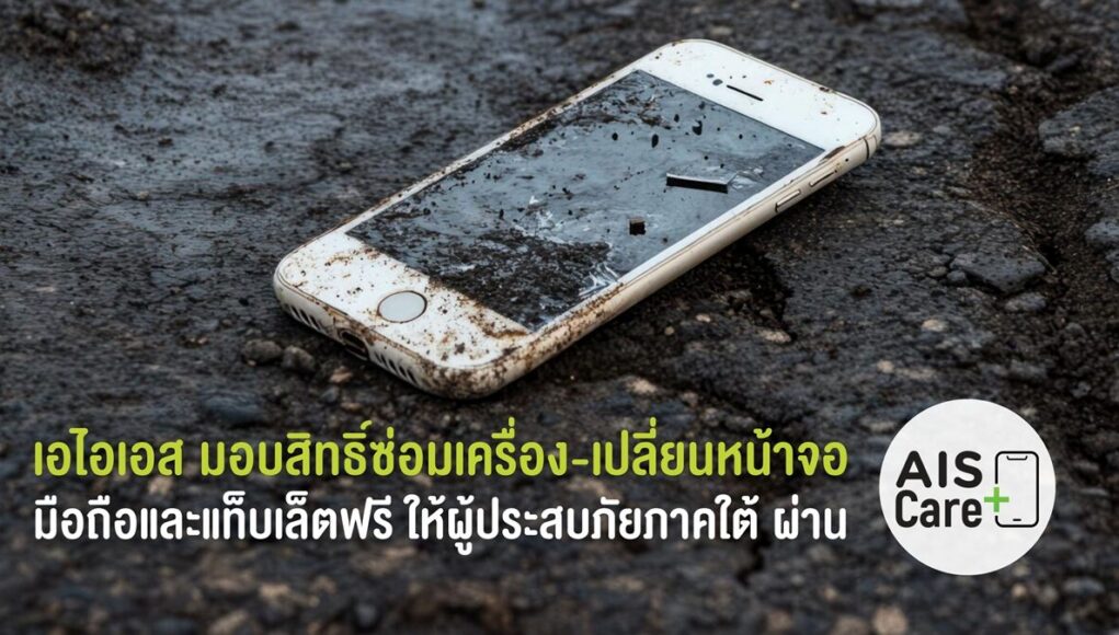 ประเด็นสำคัญจาก: เอไอเอส มอบสิทธิ์ซ่อมเครื่อง เปลี่ยนหน้าจอ มือถือ และแท็บเล็ตฟรี ให้ผู้ประสบภัยน้ำท่วมใต้