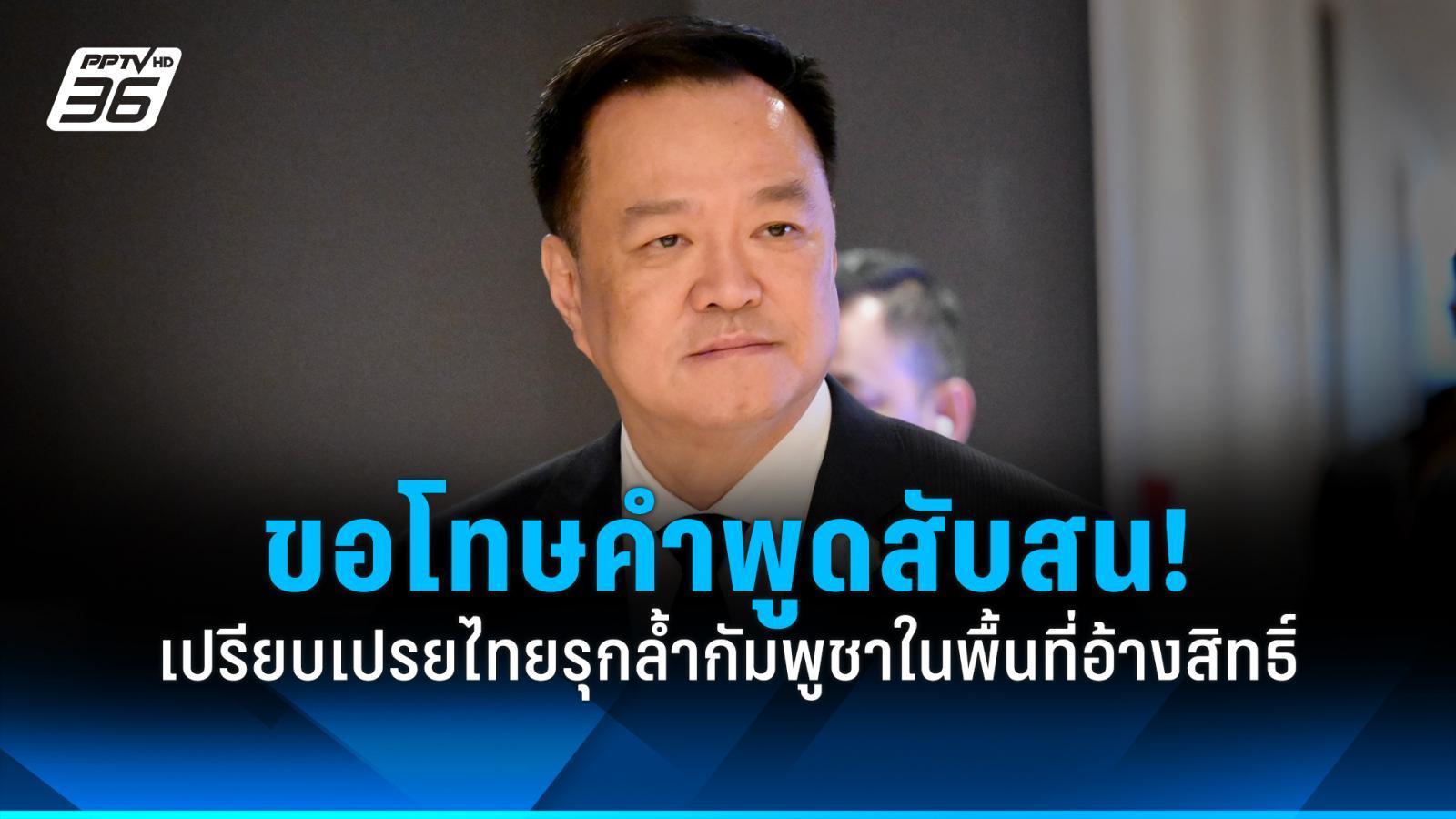 ประเด็นสำคัญจาก: “อนุทิน“ ขอโทษคำพูดสับสน! เปรียบเปรยไทยรุกล้ำกัมพูชาในพื้นที่อ้างสิทธิ์