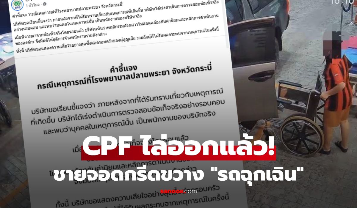 CPF ประกาศยุติการจ้างผู้เกี่ยวข้องจากกรณีจอดรถกีดขวางรถฉุกเฉินของโรงพยาบาล ตามรายงานของ Sanook โดยยังไม่มีรายละเอียดเชิงลึกเพิ่มเติมในขณะนี้