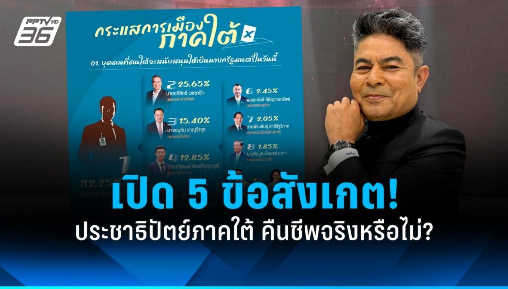 ประเด็นสำคัญจาก: “เทพไท” เปิด 5 ข้อสังเกต ประชาธิปัตย์ภาคใต้ คืนชีพจริงหรือไม่?