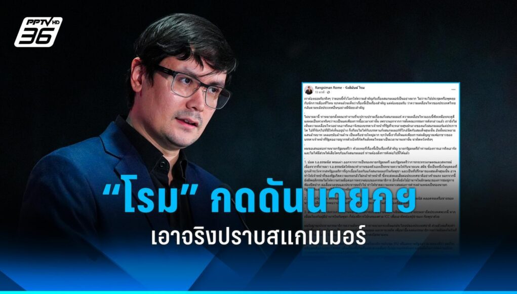 นายรังสิมันต์ โรม เรียกร้องให้นายกรัฐมนตรีพิจารณาปลด ร.อ.ธรรมนัส พรหมเผ่า จากตำแหน่งรองนายกรัฐมนตรี พร้อมขอให้มีการตรวจสอบเส้นทางการเงินของเครือข่ายที่เกี่ยวข้อง อ่านต่อที่นี่