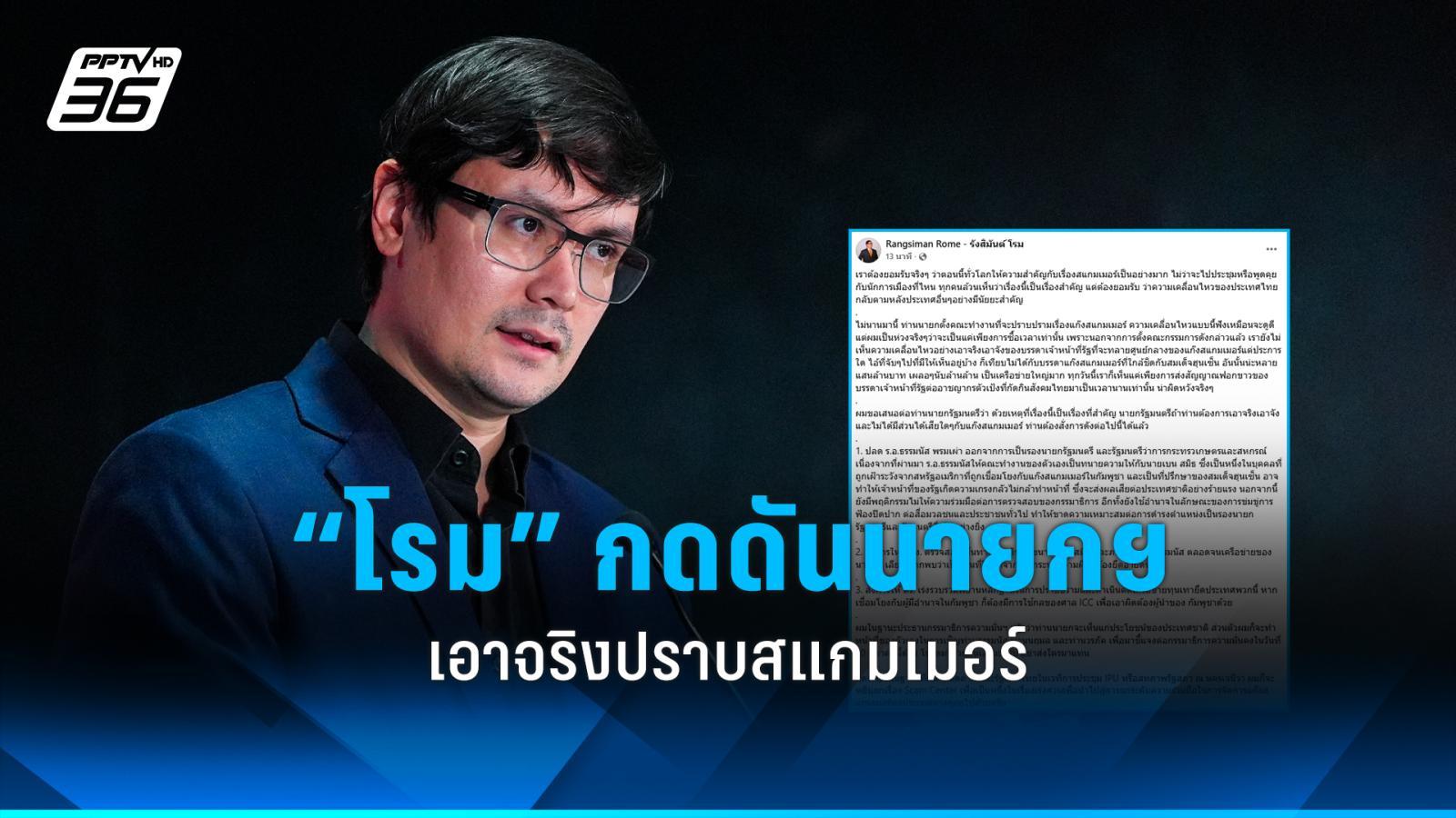 - นายรังสิมันต์ โรม เรียกร้องให้ปลด ร.อ.ธรรมนัส พรหมเผ่า