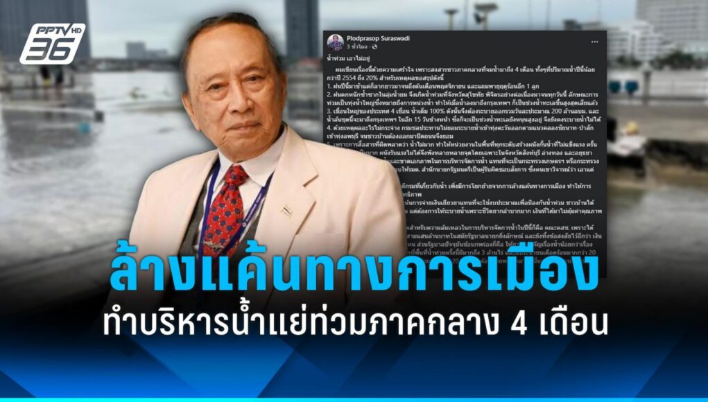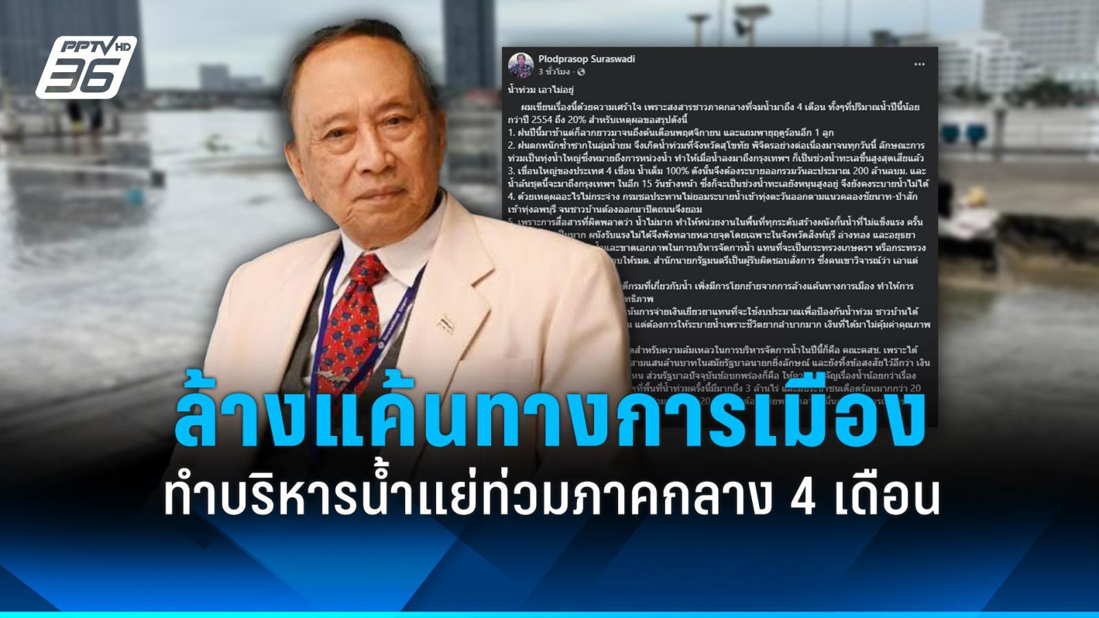 ประเด็นสำคัญจาก: “ปลอดประสพ” ชี้ ล้างแค้นทางการเมืองทำบริหารน้ำไร้ประสิทธิภาพ