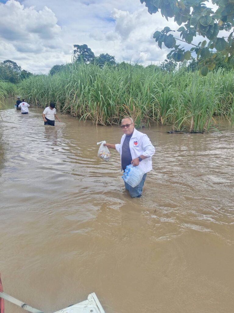 ตัวแทนพรรคปวงชนไทยมอบถุงยังชีพให้ผู้ประสบภัยน้ำท่วม